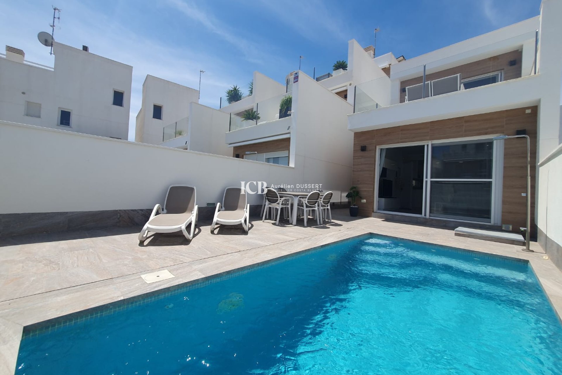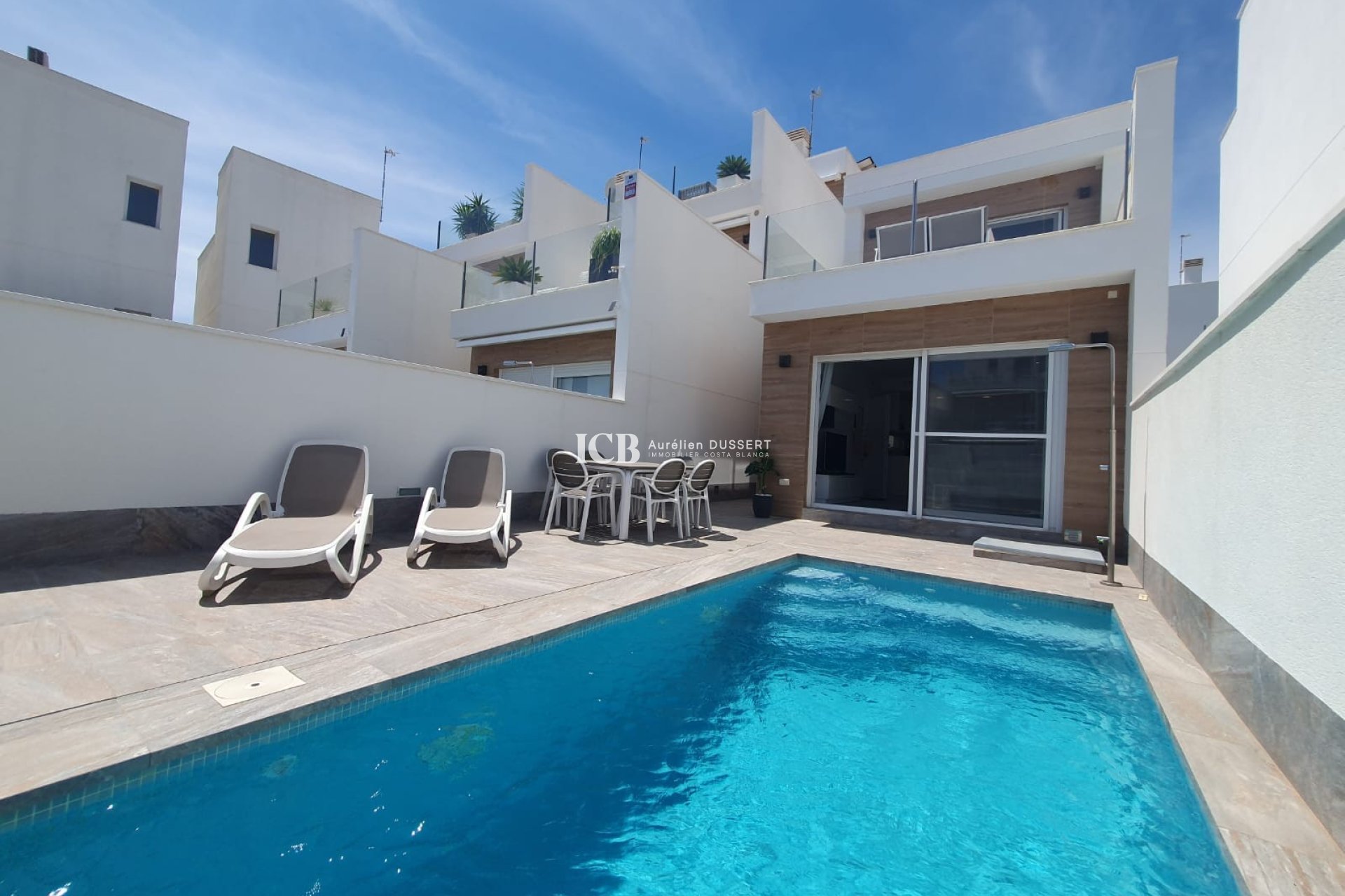 Moderno chalet con piscina privada que consta de 3 dormitorios, 2 baños, se vende totalmente amueblado con electrodomésticos. También tiene aire acondicionado central y mucho espacio de almacenamiento. A menos de 5 minutos de las playas y del centro de la ciudad. La propiedad tiene licencia turística y un buen rendimiento de alquiler. No dude en ponerse en contacto con nosotros para más información.